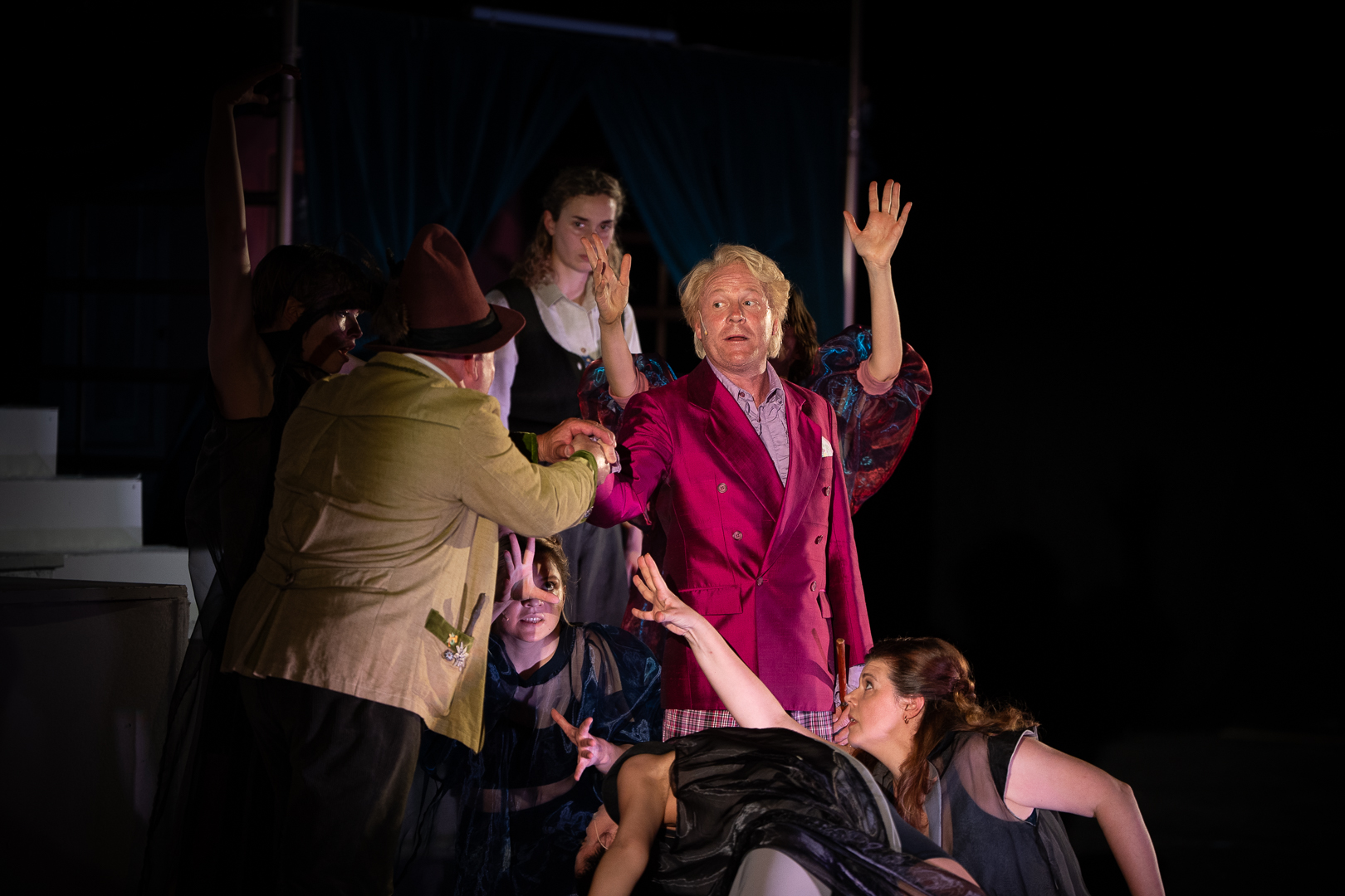 Mit Abstand die stressigste Phase des ganzen Projektes war – auch abzusehen – die Woche vor der Prämiere. Erst, wenn alle Kostüme passen, das Licht richtig eingestellt ist und das Stück sitzt, können die Bilder für das Programmheft aufgenommen werden. Und das ist mit dem Druck und der damit verbundenen Frist kurz vor der Prämiere immer etwas knapp. Vor allem weil für mich der Sommerbeginn arbeitstechnisch auch eher gut voll ist.